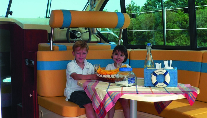 Outside is a second steering position on the top deck and a swim ladder. Bow thrusters are also included for easy manoeuvring.